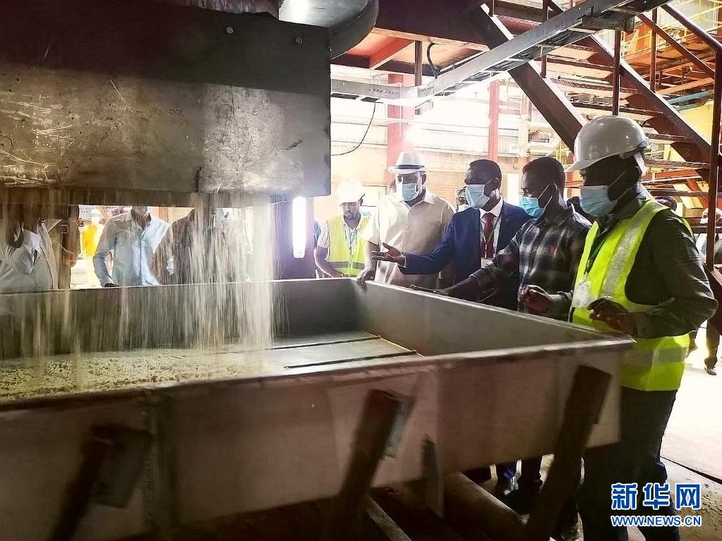 6月6日,在埃塞俄比亚阿姆哈拉州,中埃双方代表在糖厂参观。