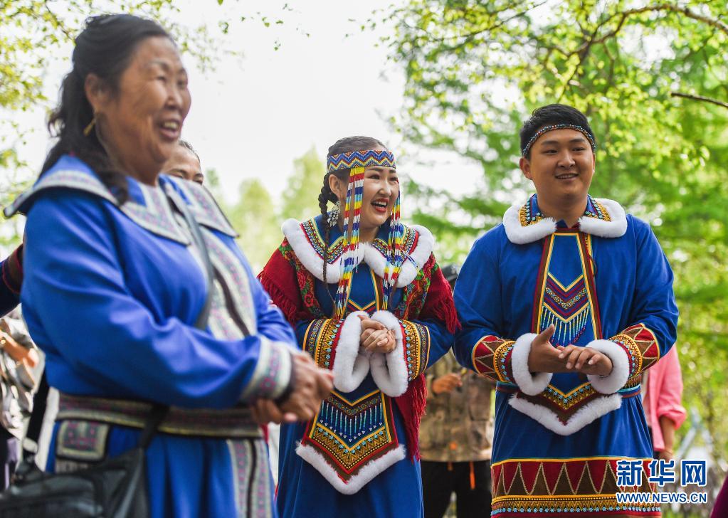 6月8日,在内蒙古根河市敖鲁古雅鄂温克族乡的一片森林中,当地的鄂温克族人举办了一场传统婚礼。驯鹿驮着新娘、载着嫁妆,行进在森林里,鄂温克族人载歌载舞。新娘是敖鲁古雅鄂温克使鹿部落老人玛利亚·索的孙女何琦韩,这是多年来使鹿部落少有的传统婚礼。