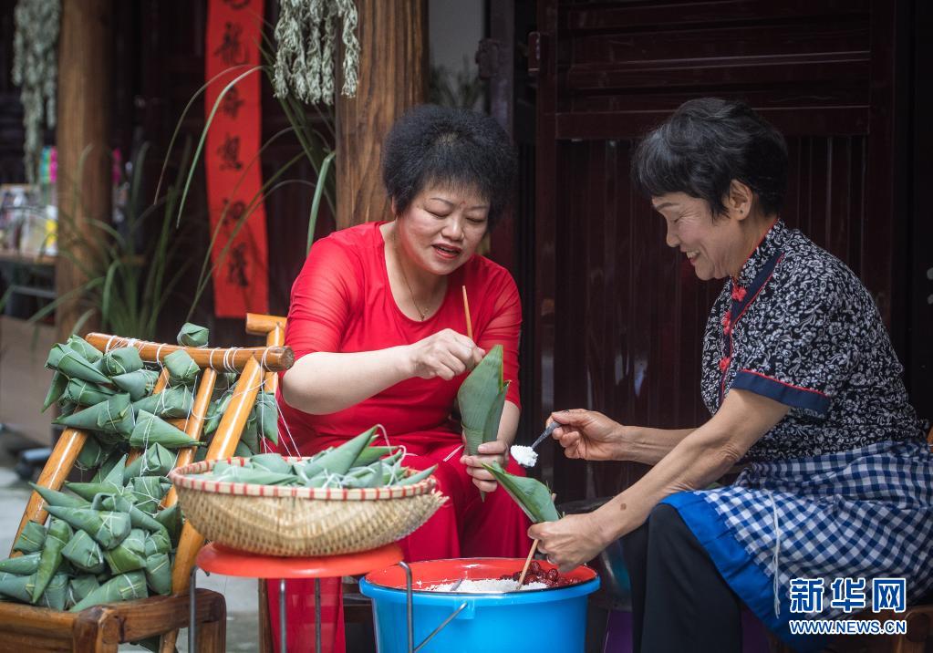 6月11日,屈原故里湖北秭归县的居民在包粽子。当日,2021屈原故里端午文化节在湖北省宜昌市秭归县开幕,多地游人到屈原故里,体验端午习俗,感受传统文化的魅力。秭归县的居民往往从农历四月底开始忙碌——泡糯米、杀鸡鸭、扫庭院、备锣鼓、修龙舟……到了端午节前夕,用划龙舟、扎香囊、包粽子等民间习俗活动迎接端午佳节,热闹的节日气氛一直持续约20天。新华社记者 肖艺九 摄