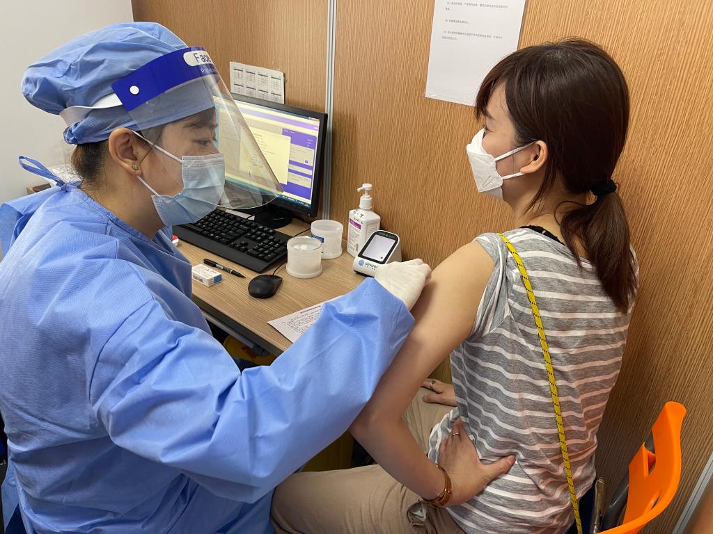 台湾姑娘廖子瑄在上海接种了第一剂疫苗。(受访者供图)