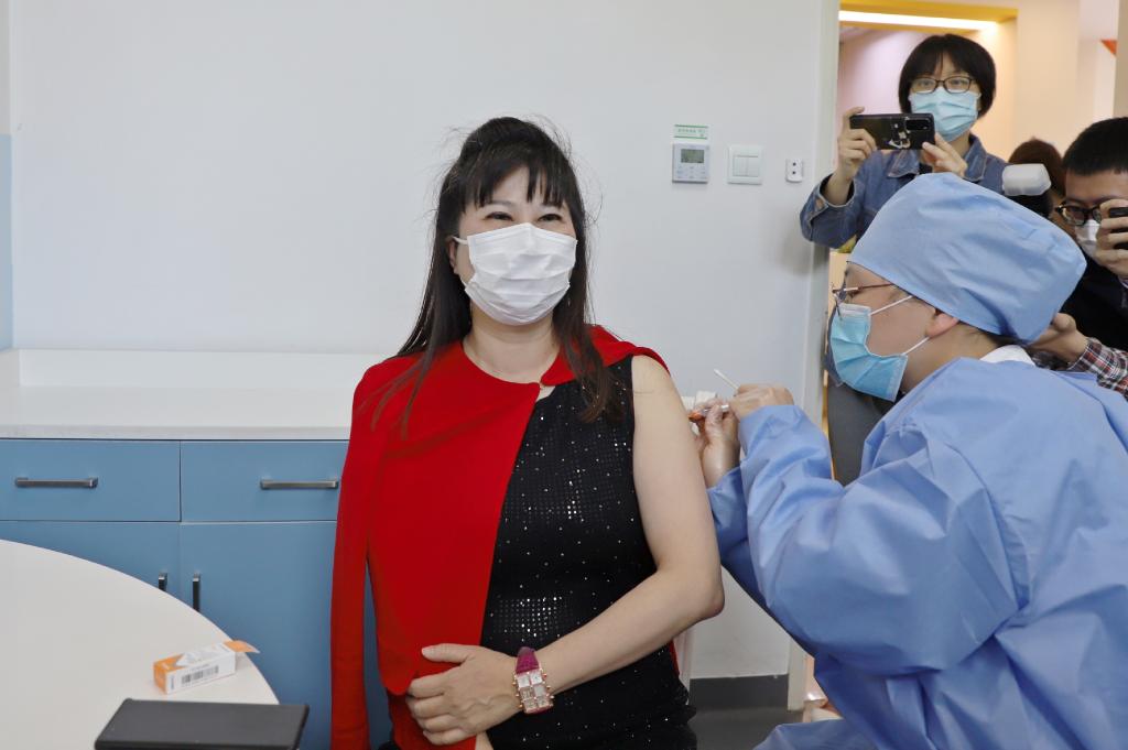 上海市台湾同胞投资企业协会会长张简珍接种疫苗。(受访者供图)