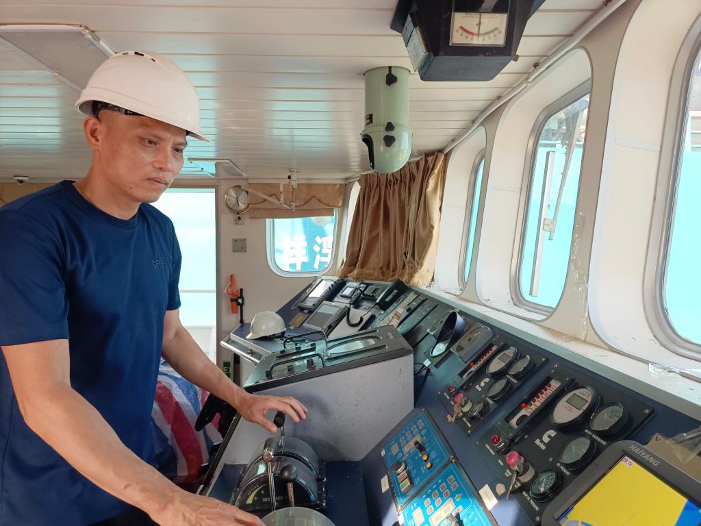 卢伟在三沙综合执法2号船驾驶舱工作。(受访者供图)