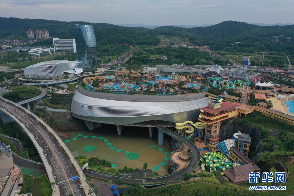 这是2020年7月11日无人机拍摄的湘江欢乐城。湘江欢乐城所在地原是一座巨大的废弃矿坑,历经6年建设,建成总面积约3万平方米的大型室内滑雪场。新华社记者 薛宇舸 摄