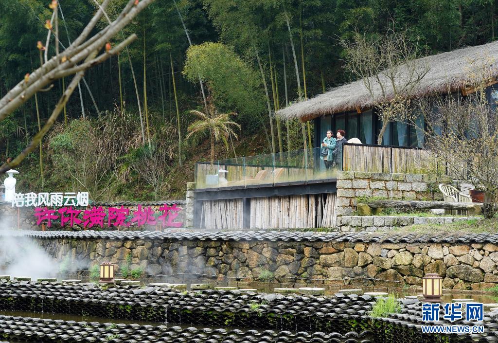 游客在江西省南昌市湾里管理局九龙溪田园综合体的民宿村休闲观光(3月20日摄)。新华社记者 万象 摄
