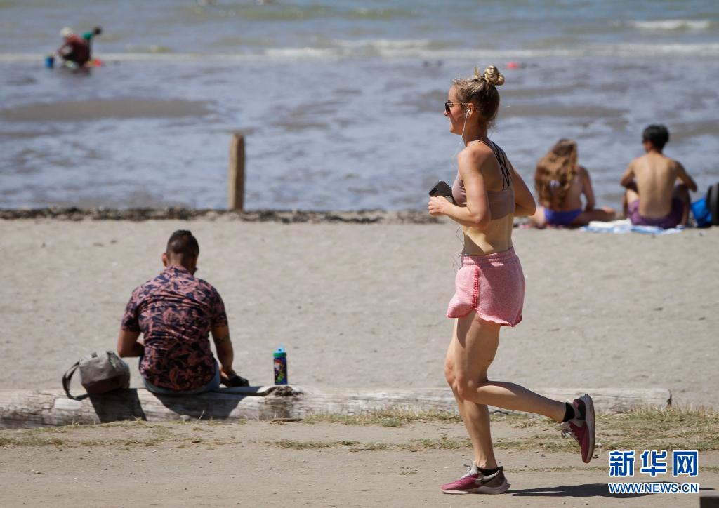 6月24日,人们在加拿大温哥华的海滩消暑。