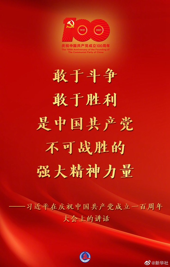 习近平说,以史为鉴、开创未来,必须进行具有许多新的历史特点的伟大斗争。敢于斗争、敢于胜利,是中国共产党不可战胜的强大精神力量。实现伟大梦想就要顽强拼搏、不懈奋斗。今天,我们比历史上任何时期都更接近、更有信心和能力实现中华民族伟大复兴的目标,同时必须准备付出更为艰巨、更为艰苦的努力。