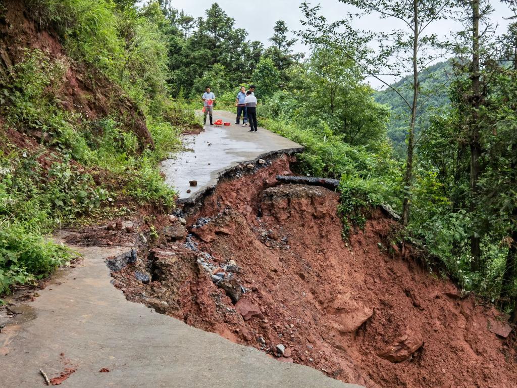 湖南省湘西土家族苗族自治州一处道路损毁现场。(受访者供图)