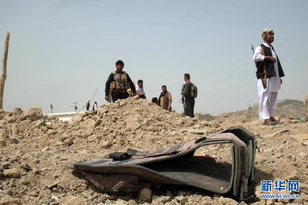 7月6日,阿富汗安全部队人员查看坎大哈市的爆炸袭击现场。
