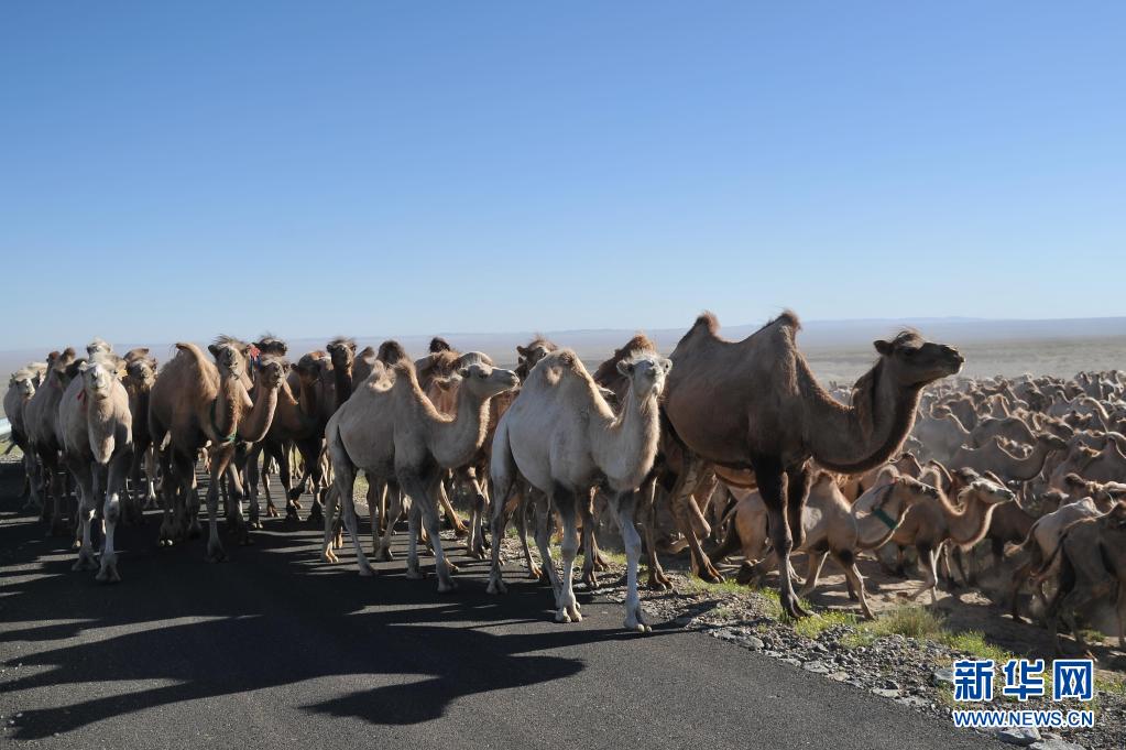 7月7日,阿克塞县红柳湾镇加尔乌宗村牧民饲养的数百头骆驼前往夏季牧场。