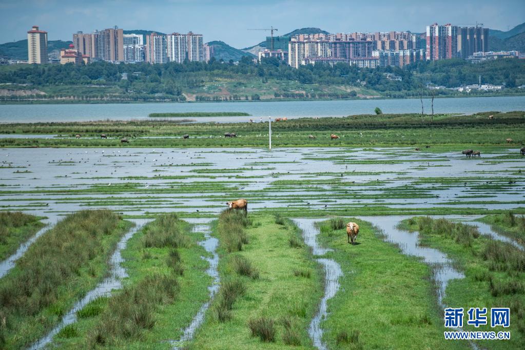 近日,位于贵州省毕节市威宁彝族回族苗族自治县的草海国家级自然保护区天气晴好,碧空如洗,呈现出一幅美丽的夏日画卷。