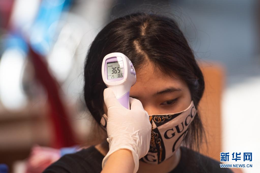 7月12日,一名女子在印度尼西亚雅加达一处人口密集区的移动疫苗接种点接受体温检测。