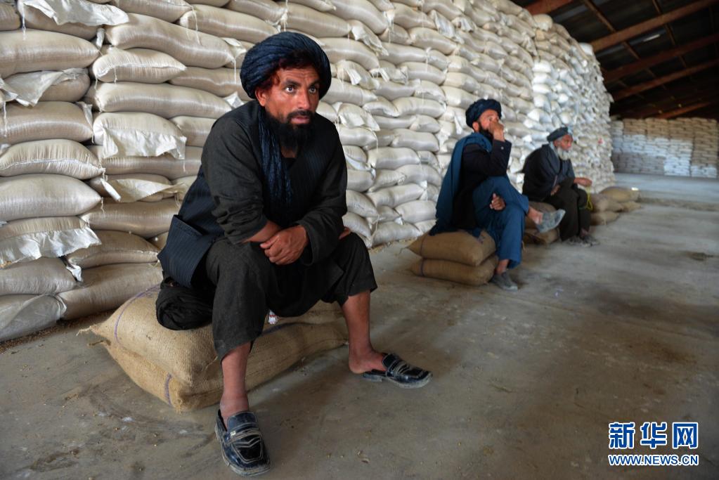 2020年4月1日,人们在阿富汗坎大哈省领取救济粮食。
