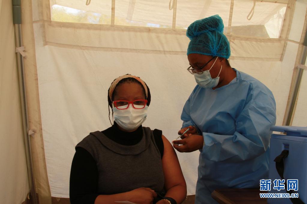 7月13日,一名女子在津巴布韦首都哈拉雷的一家医院接种新冠疫苗。