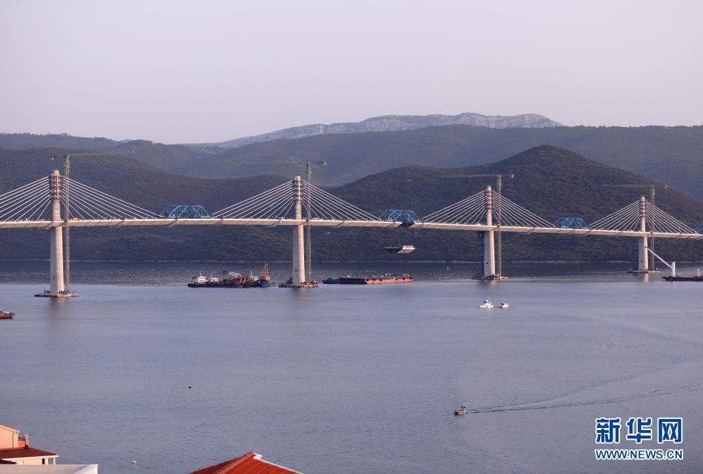当地时间28日23时许,随着中国建设者用桥面吊机把最后一片重达220吨的钢箱梁提升到位并完成焊接,中国企业承建的克罗地亚佩列沙茨跨海大桥成功合龙。佩列沙茨大桥是一座长2440米、宽22.5米的公路斜拉桥,横跨克罗地亚南部亚得里亚海的小斯通湾,连接该国大陆与佩列沙茨半岛。