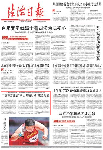 记者近日从广东省公安厅获悉,为确保建党100周年庆祝活动安全顺利进行,广东省公安厅自4月26日起组织全省公安机关集中开展“八大专项行动”,严厉打击危害国家安全犯罪、电信网络诈骗犯罪、突出刑事犯罪,集中整治社会治安秩序、交通安全秩序、执法突出问题,集中开展“我为群众办实事”和“学党史、严党纪、铸警魂”活动。全省公安机关全警动员、全力以赴,圆满完成了各项任务,有力维护了国家政治安全和全省社会治安大局持续稳定。