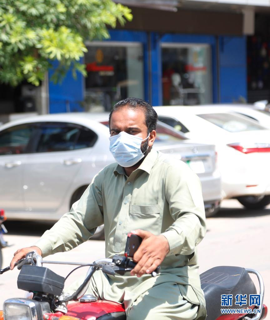8月2日,一名戴口罩的男子在巴基斯坦拉瓦尔品第骑摩托车出行。