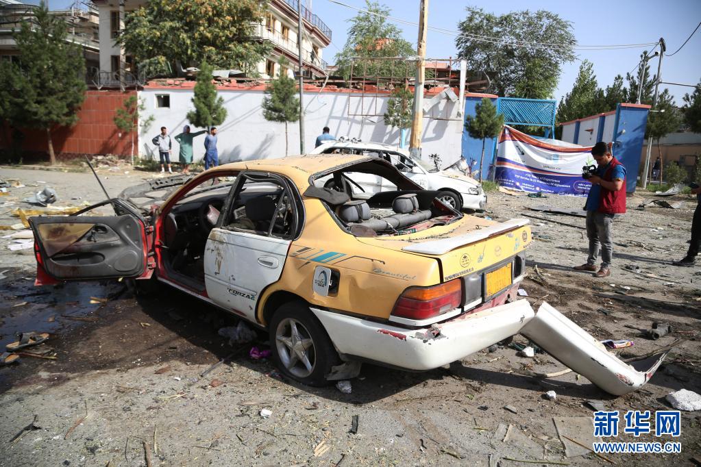 这是8月4日在阿富汗首都喀布尔拍摄的汽车炸弹袭击现场。
