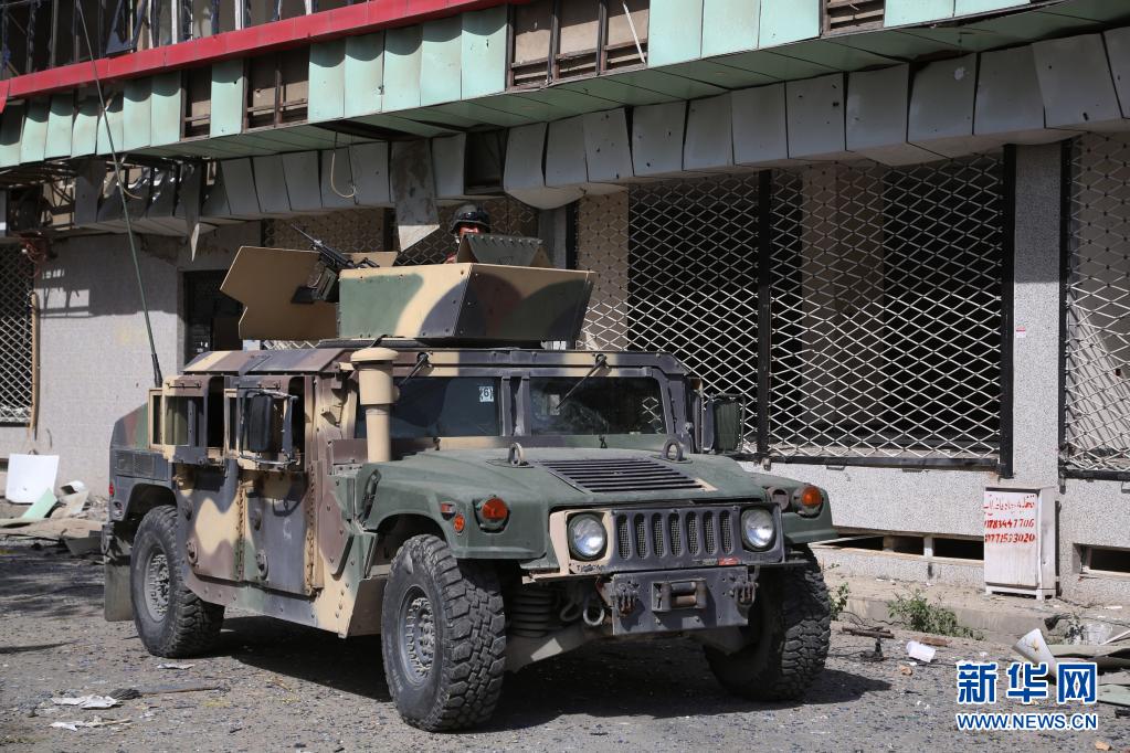 8月4日,在阿富汗首都喀布尔的汽车炸弹袭击现场,一名安全人员在军车上警戒。新华社发(赛义德摄)