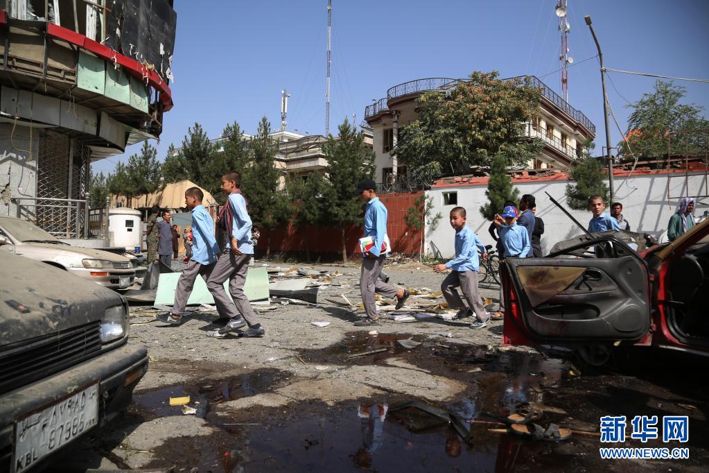 8月4日,学生走过阿富汗首都喀布尔的汽车炸弹袭击现场。新华社发(赛义德摄)