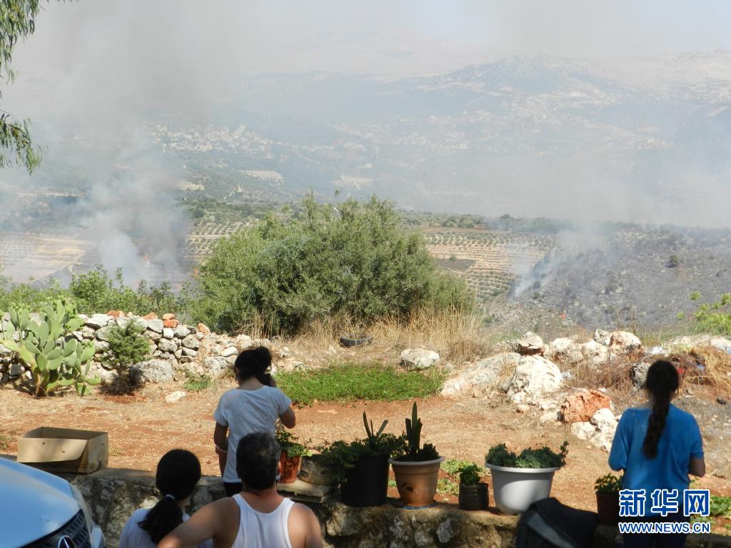 8月4日,人们看着以色列发射的炮弹落在黎巴嫩南部马里镇。