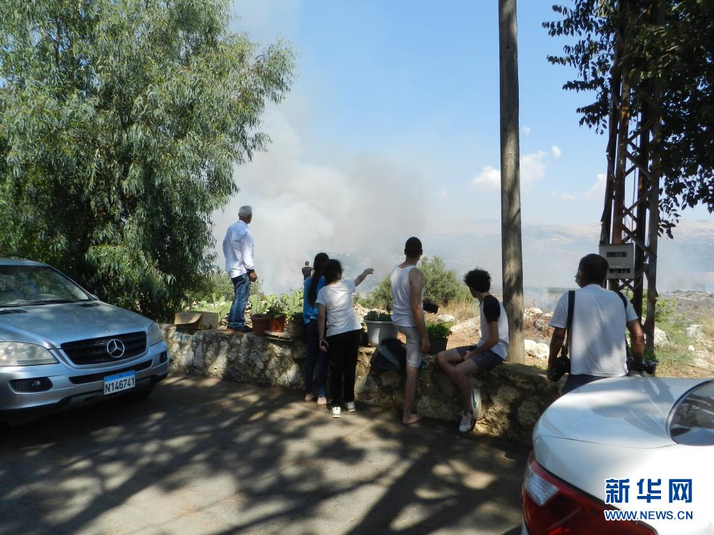 8月4日,人们看着以色列发射的炮弹落在黎巴嫩南部。