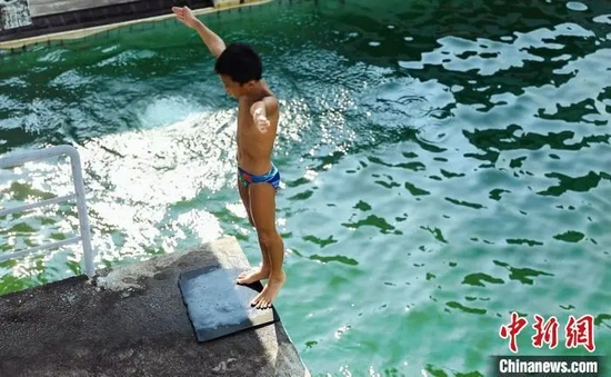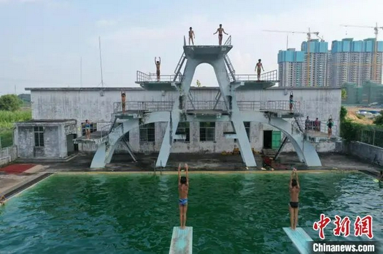 全红婵母校——湛江体育学校里的学生正在练习跳水(资料图) 陈锴进 摄