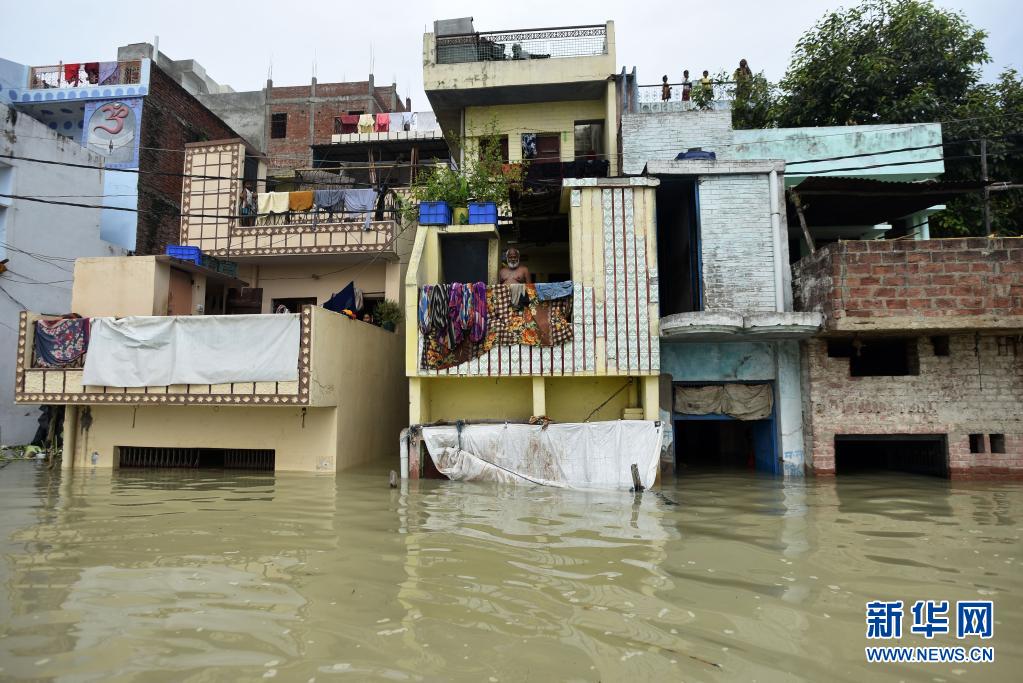 这是8月7日在印度普拉亚格拉杰拍摄的被洪水包围的房屋。