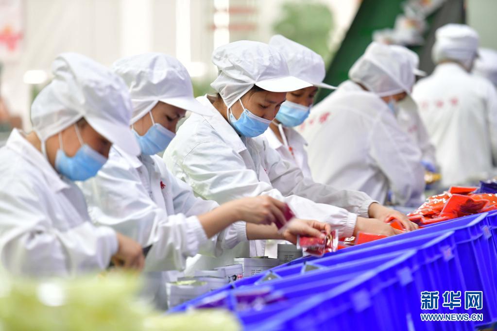 工人在广西善元食品有限公司螺蛳粉生产车间生产线上包装产品(8月17日摄)。柳州螺蛳粉是广西著名小吃,也是国家级非物质文化遗产。近年来,柳州市用工业化理念推动螺蛳粉全产业链高质量发展,逐步实现了自动化、智能化、规模化生产,创造就业岗位30多万个,帮助5500多户贫困户、2.8万贫困人口实现脱贫。