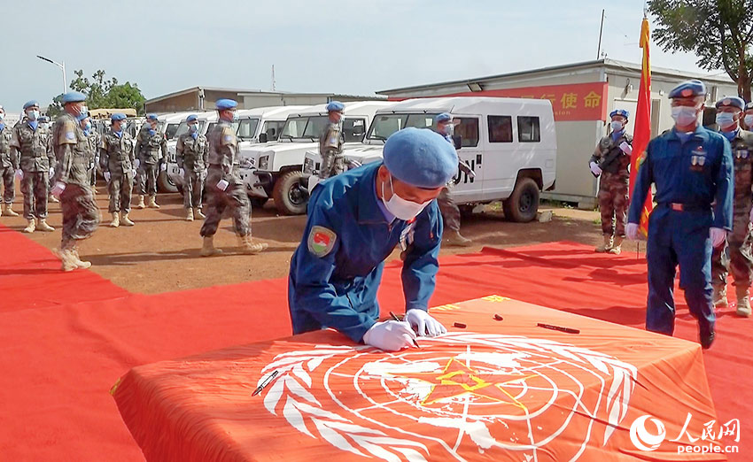 中国首批赴阿卜耶伊维和直升机分队全体官兵再次荣获联合国“和平荣誉勋章”