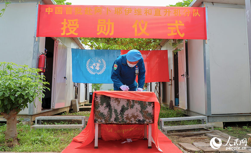 中国首批赴阿卜耶伊维和直升机分队全体官兵再次荣获联合国“和平荣誉勋章”
