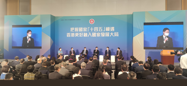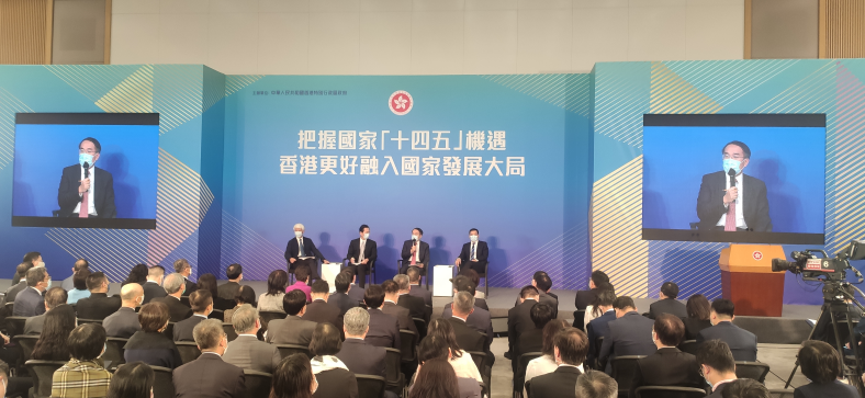 8月23日上午,香港首场“十四五”规划纲要宣讲会在香港特区政府总部举行。宣讲团成员与香港各界热烈互动,气氛活跃。