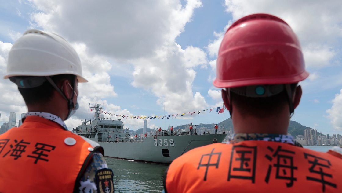 8月25日,轮换进港的海军舰艇准备靠岸。新华社发