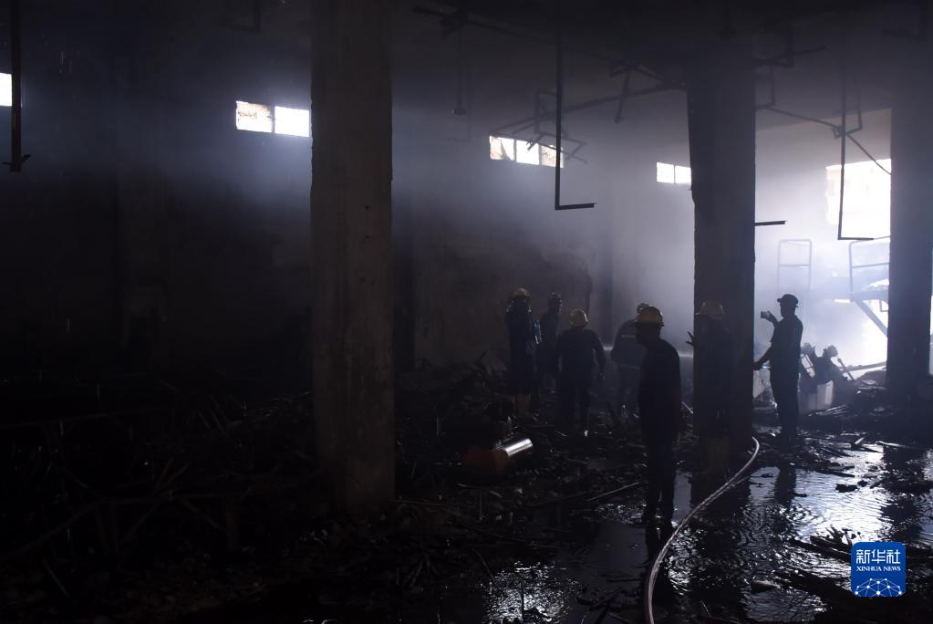 8月27日,消防员在巴基斯坦卡拉奇的火灾现场工作。