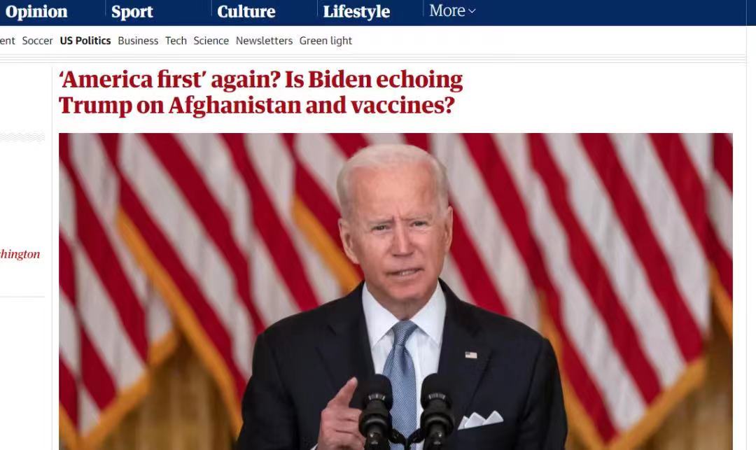△英国《卫报》刊文:美国优先?拜登是否在阿富汗和疫苗问题上步了特朗普的后尘?