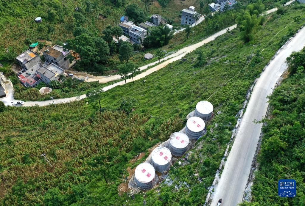 这是广西都安瑶族自治县永安镇安兰村新建的水柜(2020年7月22日摄,无人机照片)。