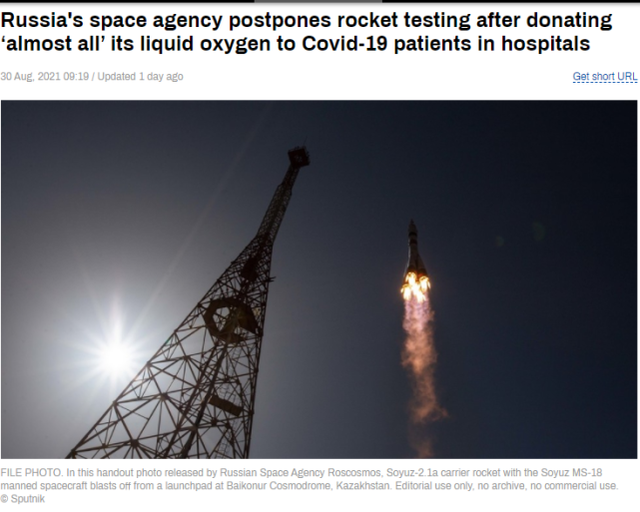 据今日俄罗斯电视台(RT)30日报道,俄罗斯航天局(Roscosmos)推迟了火箭发动机的测试活动,原因是几乎所有液氧都被优先提供给医院,以救助第三波疫情下的新冠肺炎患者。