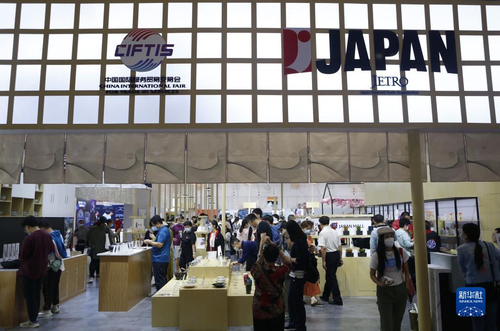 9月6日,参会人员在2021中国国际服务贸易交易会国家会议中心国别展区日本展台参观选购。