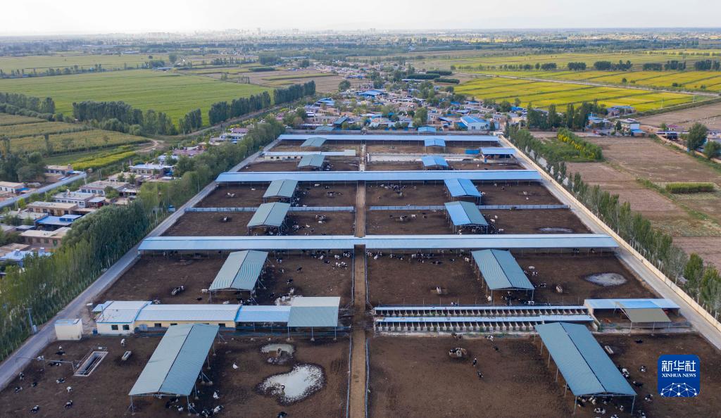 这是9月8日拍摄的宁夏灵武市郝家桥镇沙江村奶牛养殖基地(无人机照片)。
