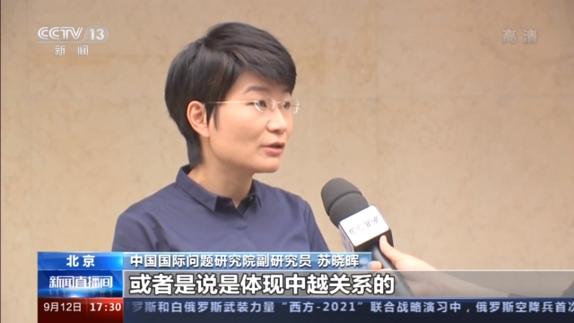 中国国际问题研究院副研究员 苏晓晖:规格是大家关注的一个非常重要的观察点,或者是说是体现中越关系的一个重要的窗口。在会见的过程当中,双方的基调是非常积极的,从双方传递出的积极信息以及谈到的一些重要的合作领域、一些合作原则上可以看到双方相向而行的意愿,双方都在寻找利益的共同点。这样的一种积极互动的态势,对于中国和周边国家之间关系的稳定,未来中越能够克服困难,管控分歧,达成更深层次的合作是有非常积极的意义的。