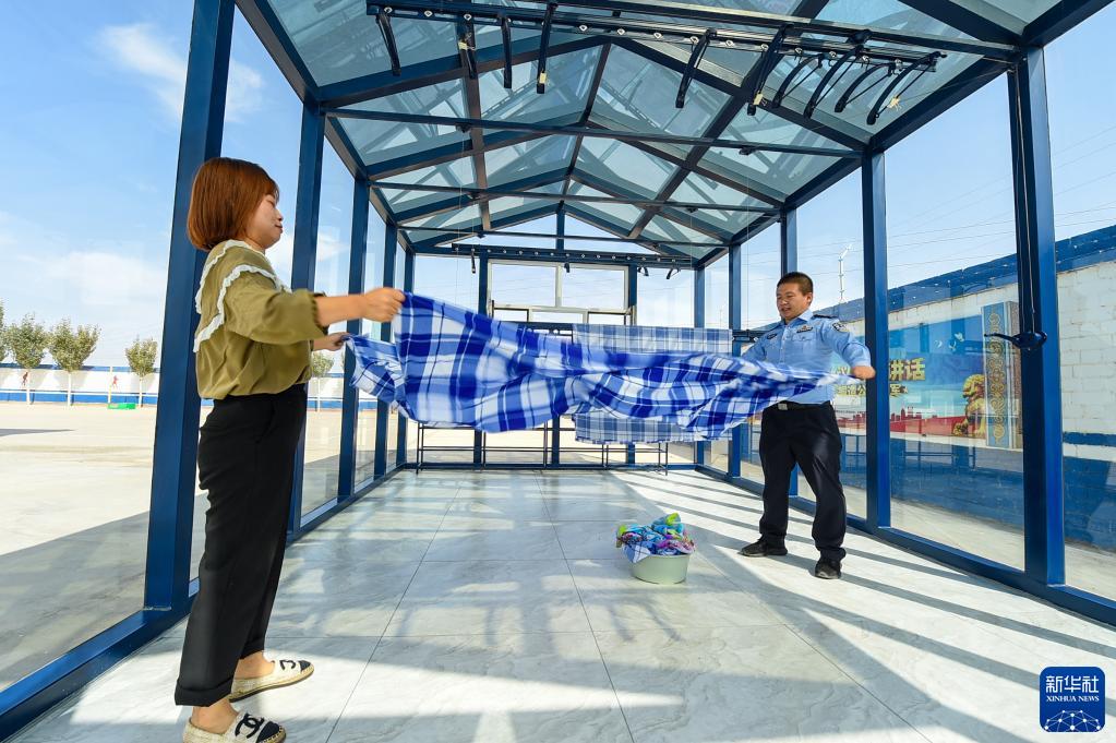 9月18日,张文娟和杨鑫楠准备晾晒清洗好的被单。
