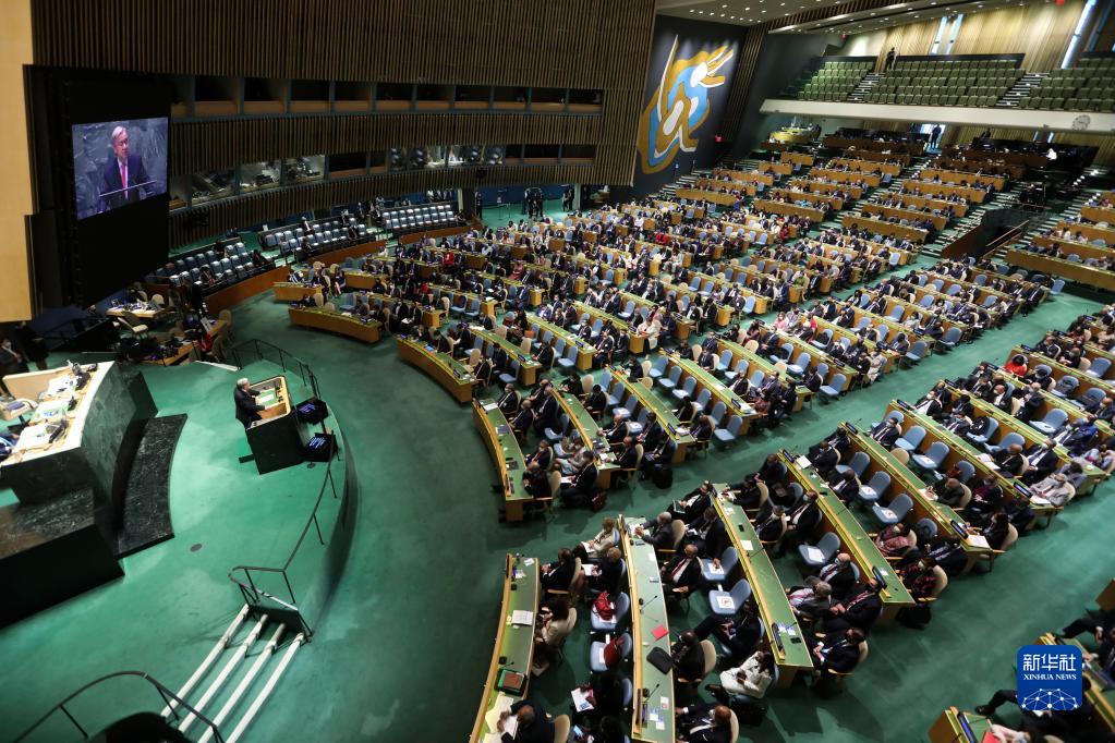 9月21日,在位于纽约的联合国总部,联合国秘书长古特雷斯在第76届联合国大会一般性辩论开幕式上致辞。
