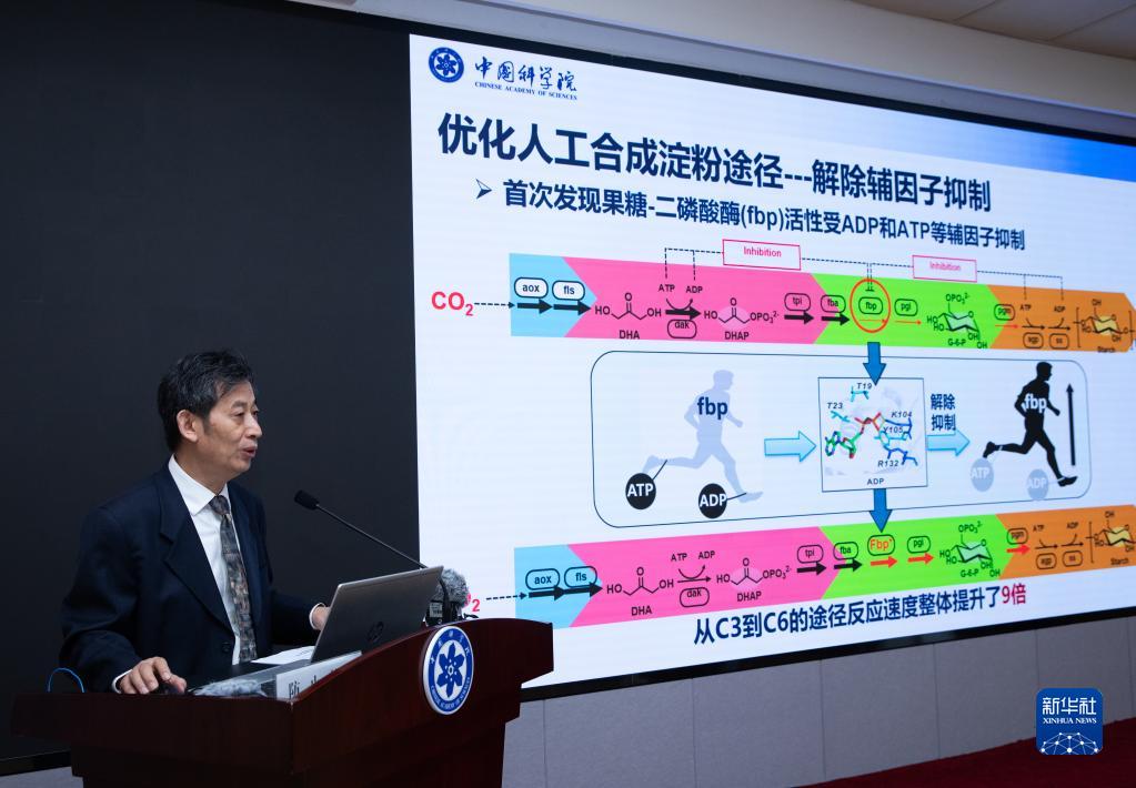 9月23日,中国科学院天津工业生物技术研究所马延和研究员在发布会上向媒体介绍研究成果。