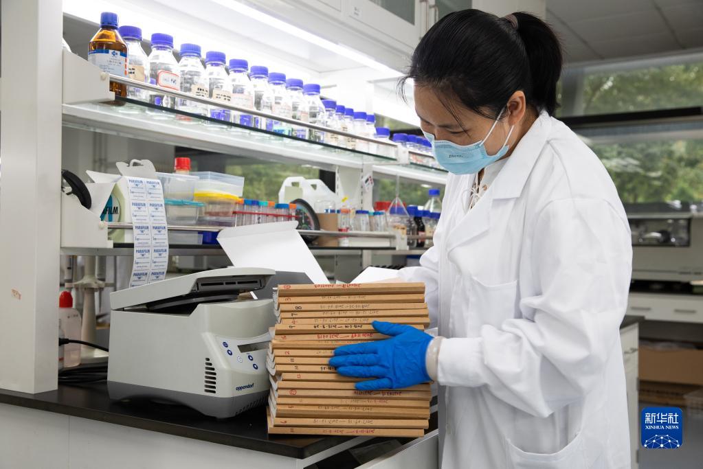 在中国科学院天津工业生物技术研究所实验室,孙红兵科研助理在整理实验日记(9月16日摄)。