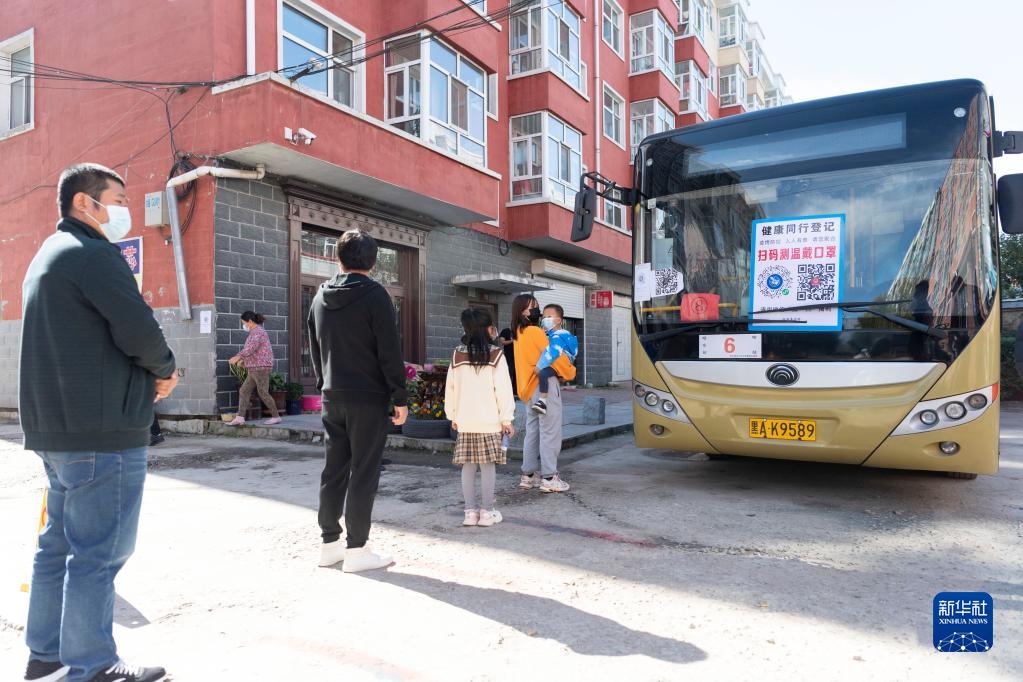 9月24日,市民在哈尔滨市巴彦县兴隆镇一流动核酸检测点排队进行检测。哈尔滨市调配了60辆核酸采样流动车辆支援巴彦县,方便当地居民就近检测。新华社记者 谢剑飞 摄