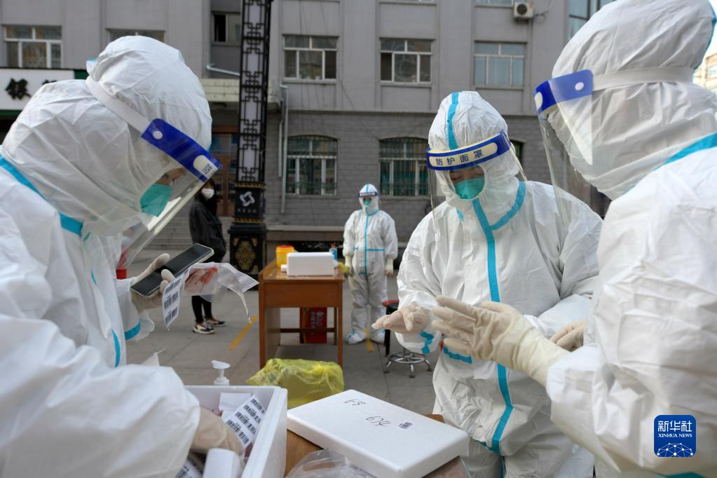 9月25日拍摄的哈尔滨市巴彦县第68号核酸检测点工作现场。新华社记者 王建威 摄
