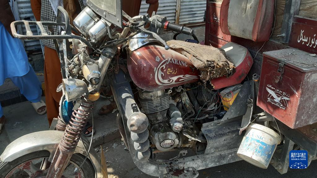 这是9月25日在阿富汗楠格哈尔省首府贾拉拉巴德拍摄的在爆炸袭击中受损的三轮车。新华社发(哈米杜拉摄)