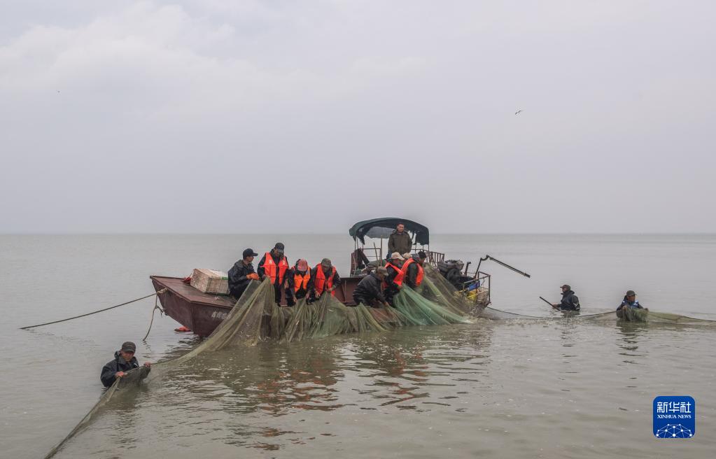 在吉林省松原市查干湖,渔民进行捕捞作业(2018年9月28日摄)。