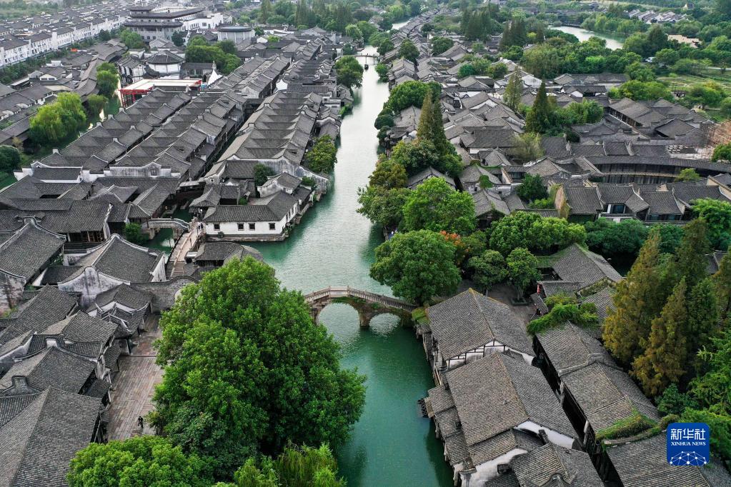 9月25日拍摄的乌镇西栅景区(无人机照片)。新华社记者 黄宗治 摄