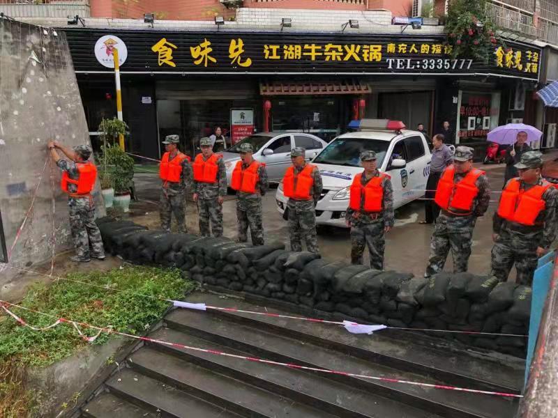 汛情就是命令。10月5日,南充军分区启动防汛救灾预案,要求军分区机关各处领导全部结束假期返岗,命令沿江的阆中市、南部县、仪陇县、蓬安县以及主城所辖的顺庆、高坪、嘉陵三区人武部立即集结应急民兵迎战特大洪峰安全过境。