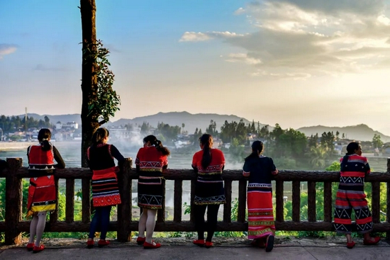 云南腾冲市清水乡,三家村中寨司莫拉佤族村的村民在广场上休息。图/新华